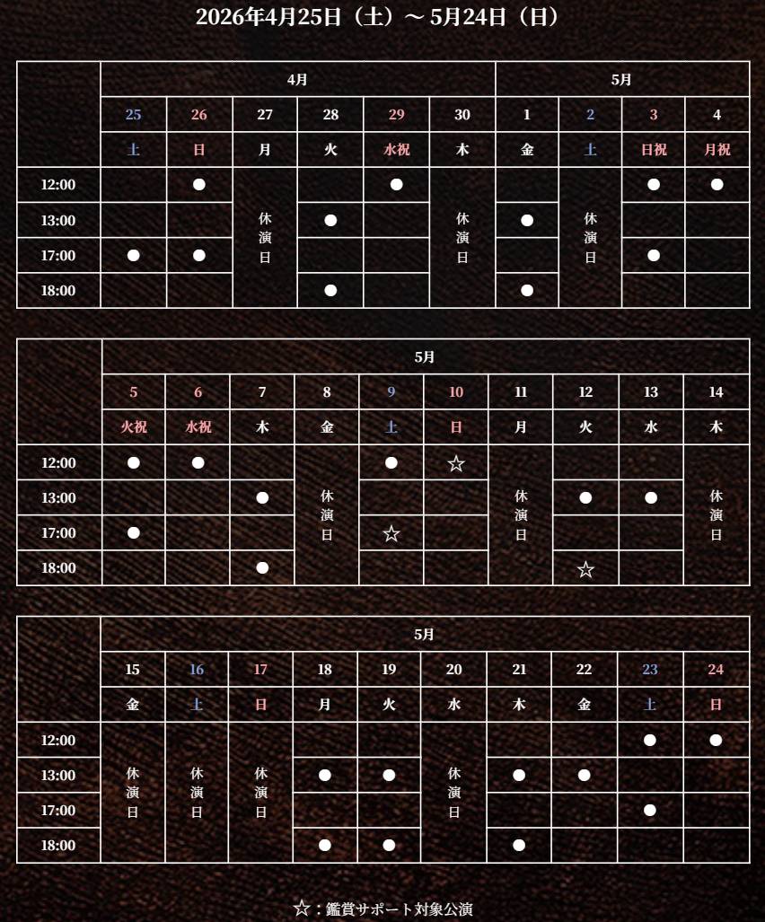 ※公演情報などに変更が生じる場合がございますので、あらかじめご了承ください。