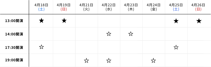 ★公演(土日昼公演)※別途ドリンク代600円が入場時に必要となります。