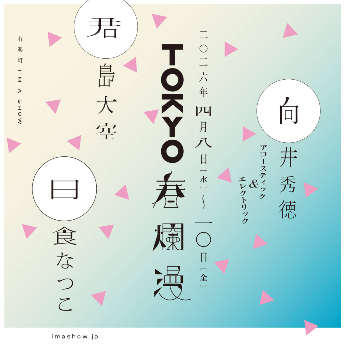 新緑が美しい4月上旬、今年も東京・有楽町の劇場 I’M A SHOW (アイマショウ) にて音楽イベント「TOKYO春爛漫」を開催します!